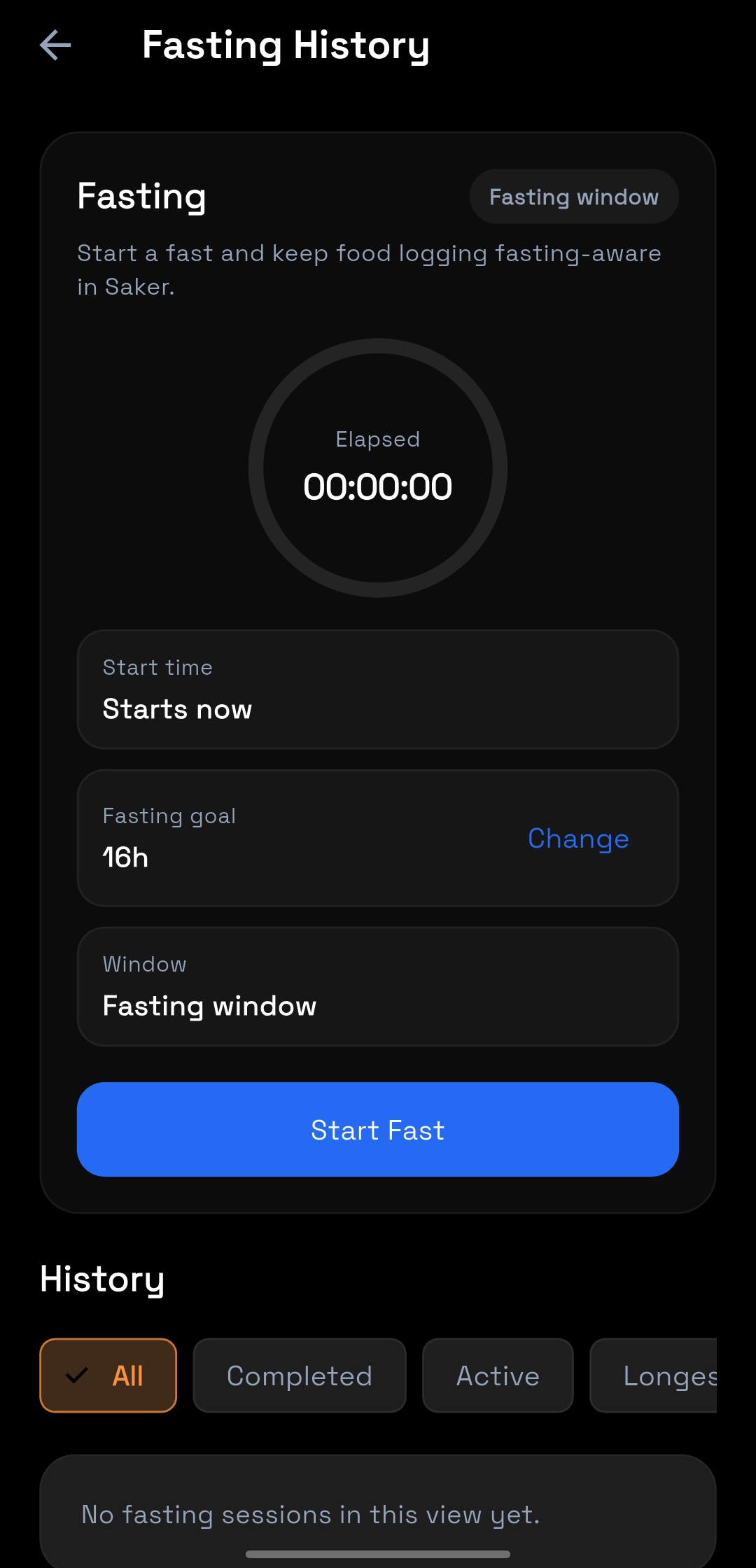 Start and track fasting windows inside the app.