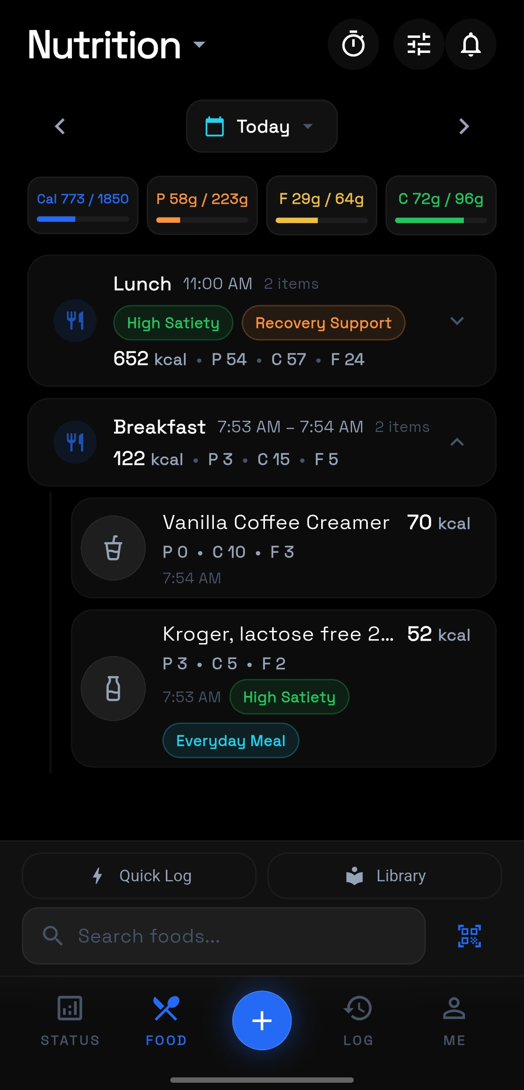 See macro progress and meals in one screen.